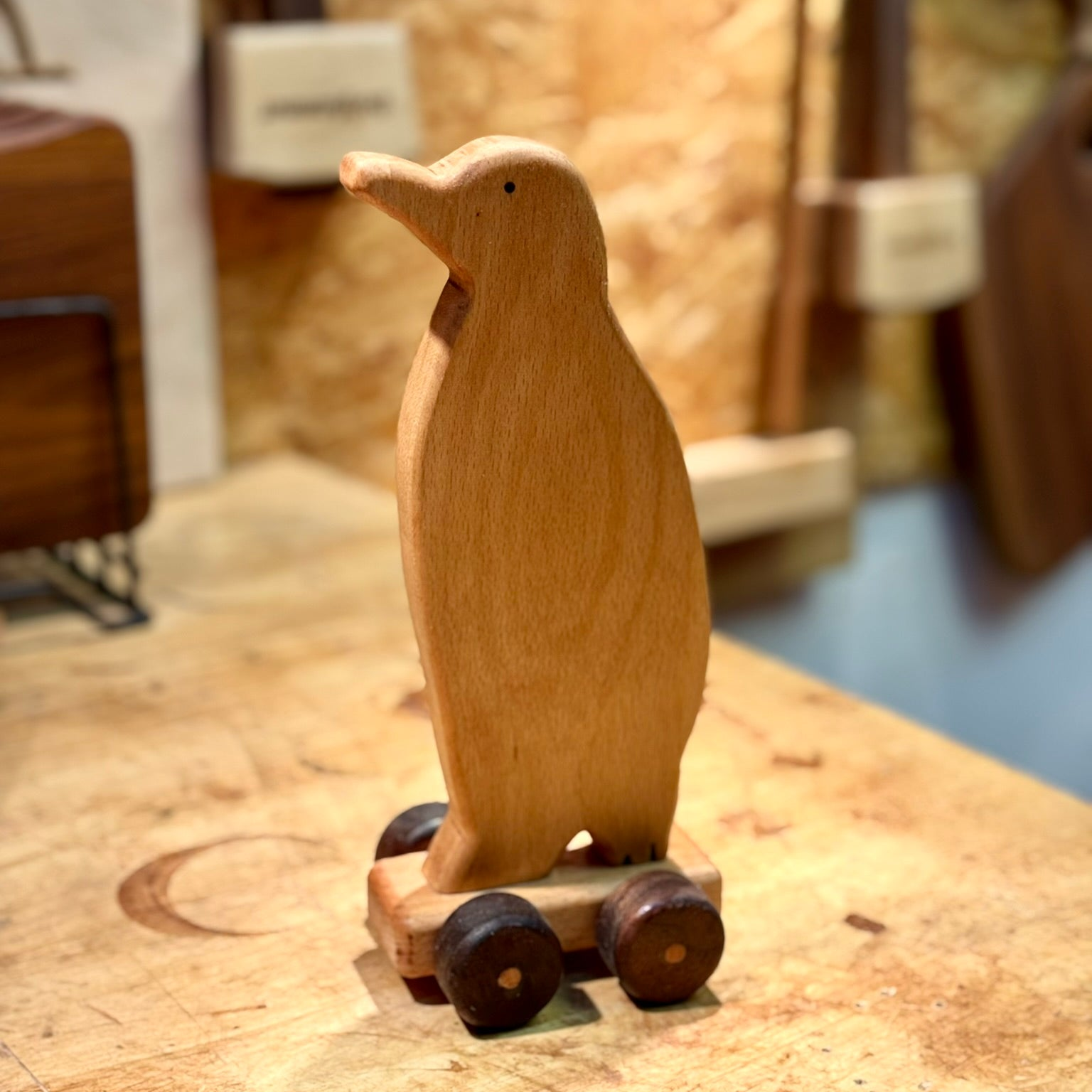 Baby Push Toy Penguin (Beech w/ Walnut wheels)